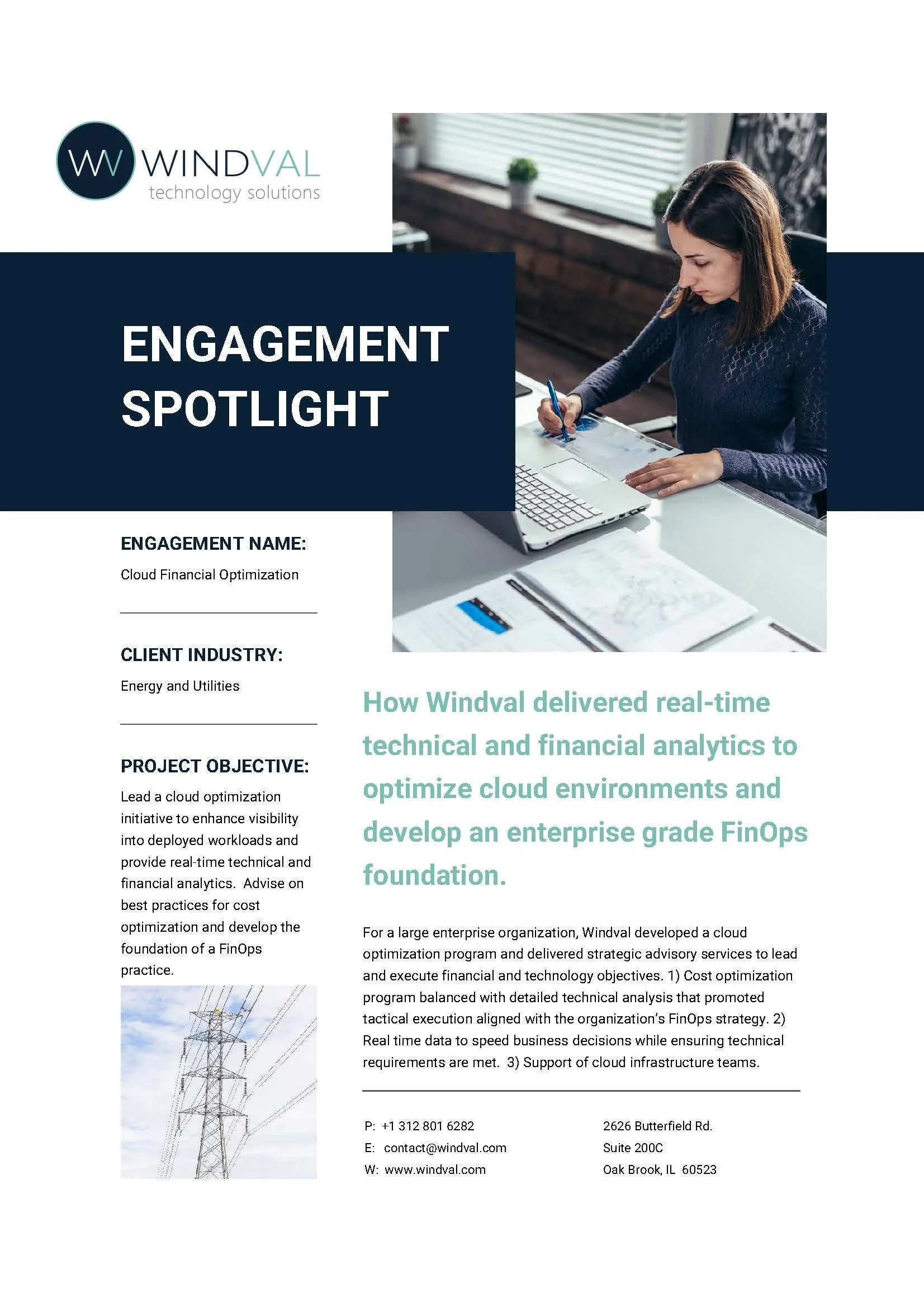 For a large enterprise organization, Windval developed a cloud optimization program and delivered strategic advisory services to lead and execute financial and technology objectives.